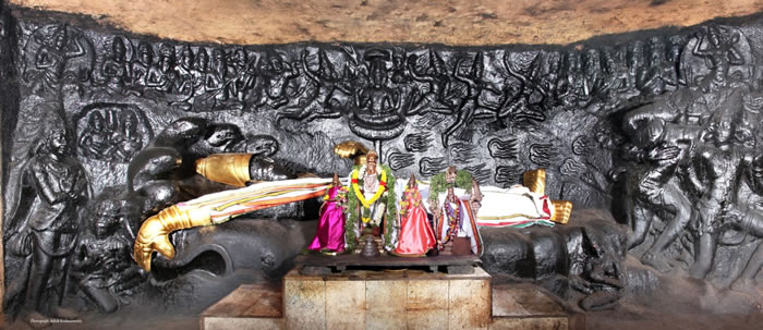 C'est cette forme allongée de Vishnu, baptisée Azhagiya Neyyar (la divinité qui enchante tous ses fidèles par sa beauté), qui est également la plus grande sculpture d'Anantasayi (Vishnu en position allongée) en Inde.