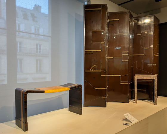 Eileen Gray se distingue des créateurs de la période par la singularité de ses œuvres et de son univers esthétique. Formée aux Beaux-Arts, au Royaume-Uni puis à Paris, Gray a choisi d’être décoratrice : lorsqu’elle structure l’espace par des éléments décoratifs, elle le fait à la façon d’une plasticienne, comme en témoigne sa prédilection pour le paravent. Initiée à la technique de la laque par le maître Seizo Sugawara, et au tissage de tapis en Afrique du Nord, elle ouvre en 1910 des ateliers consacrés à ces pratiques. L’année 1922 marque la naissance de la galerie Jean Désert, où elle produit artisanalement prototypes et petites séries et teste de nombreux matériaux, comme le tube métallique, grâce à un réseau d’artisans qu’elle emploie ou qui la forment. La galerie restera par nature expérimentale et confidentielle. Absente de l’Exposition internationale des arts décoratifs et industriels modernes de 1925, elle se consacre, à partir de la fin des années 1920, à des recherches architecturales.