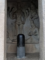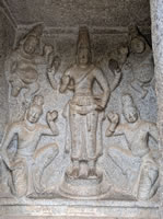 Au-dessus de l’entrée sont représentés des éléments hara, ceux que l’on retrouve généralement sur les talas des temples structurels. La cellule sud est dédiée à Subrahmanya sous la forme de Brahmasasta, celle du centre à Shiva, et la plus au nord à Vishnu. De plus, au nord de ces sanctuaires se trouve une niche dédiée à Durga.