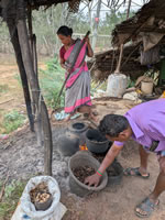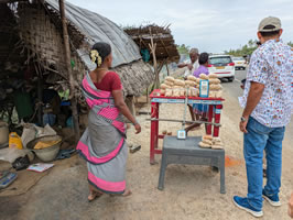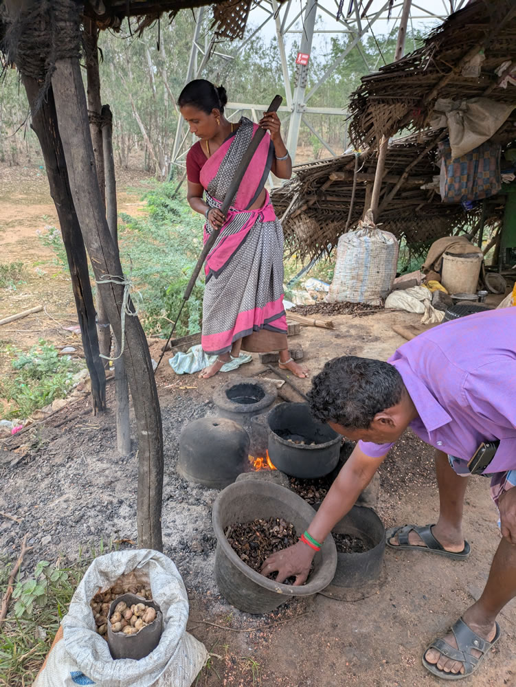 Puis arrêt au bord de la route pour voir la préparation des noix de cajou :