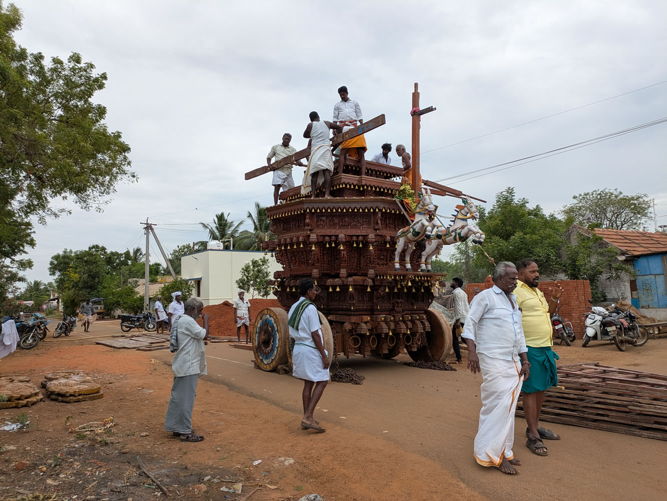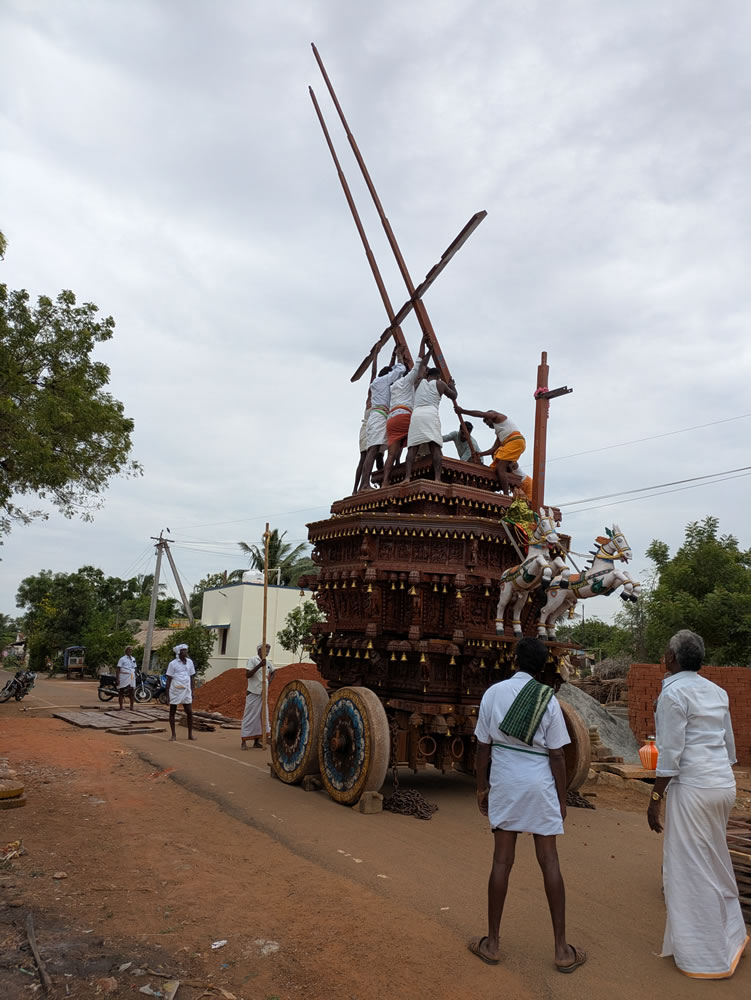 Second arrêt dans un petit village pour la mise en place d'un ratha de procession en préparation pour le lendemain :