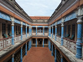 L'après-midi, visite du Chettinad, une communauté de commerçants, qui connut une grande période de prospérité au XIXè siècle, fit construire de très belles demeures. Teck, marbre, bois de rose, sculptures, rien n’était trop beau pour les propriétaires. Vastes patios intérieurs et colonnes de marbre font partie de l’architecture des maisons. Lorsque les affaires cessèrent, ils abandonnèrent ces maisons, qui font désormais partie du Patrimoine de l’Unesco.