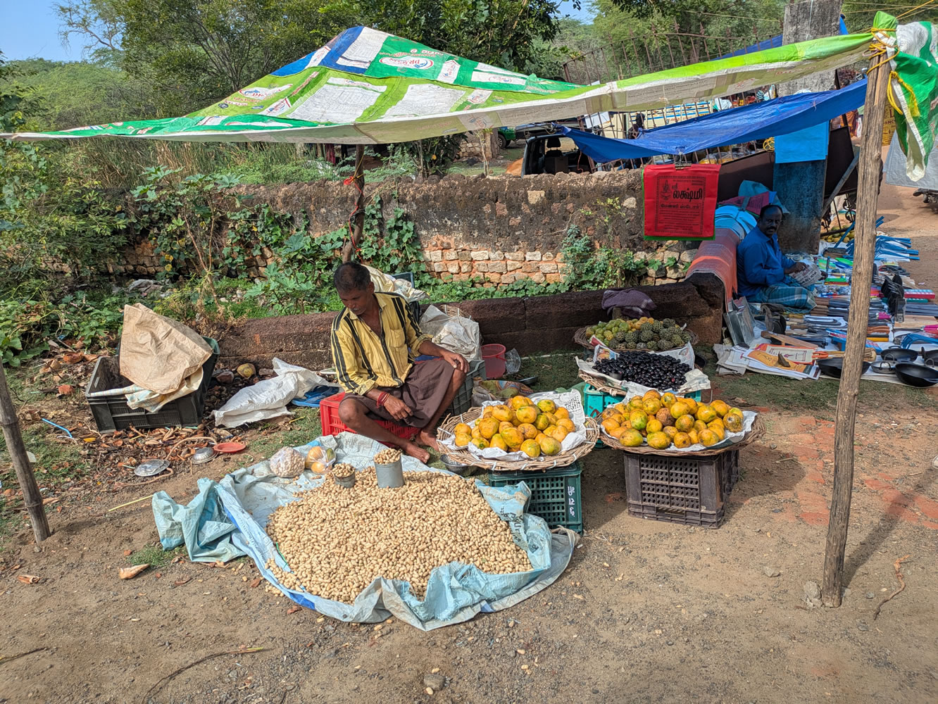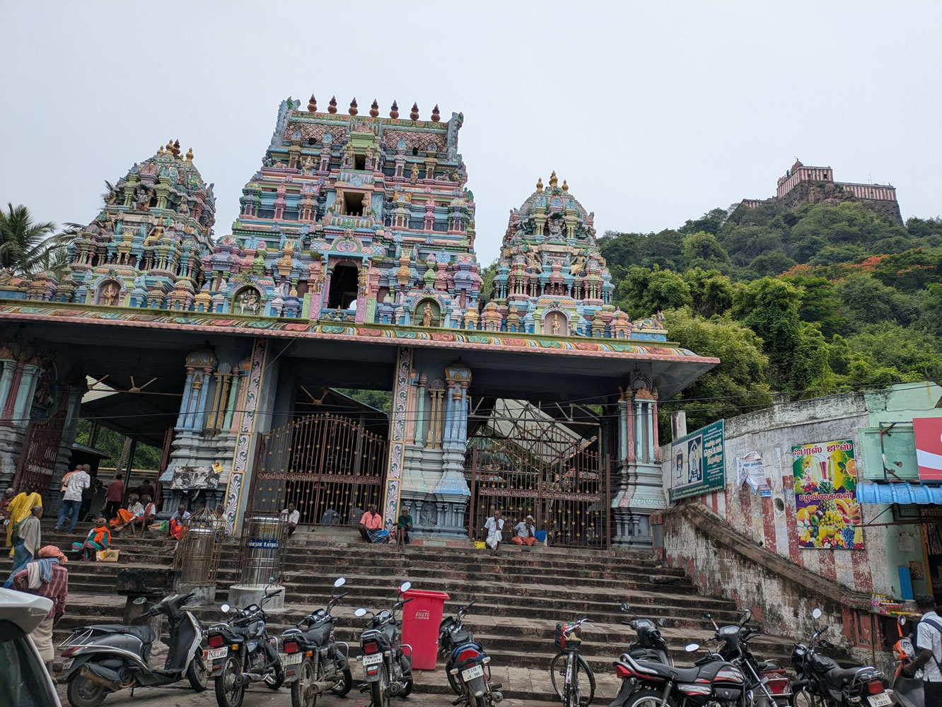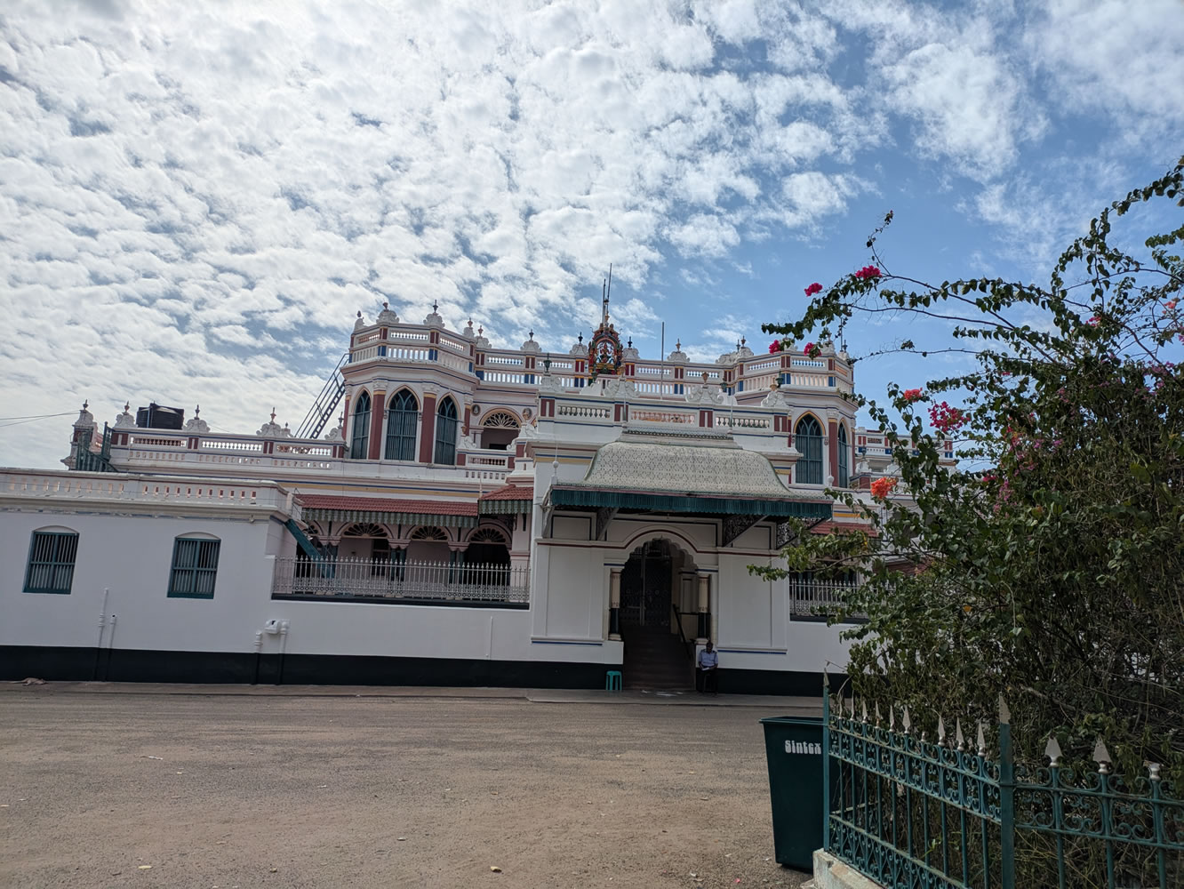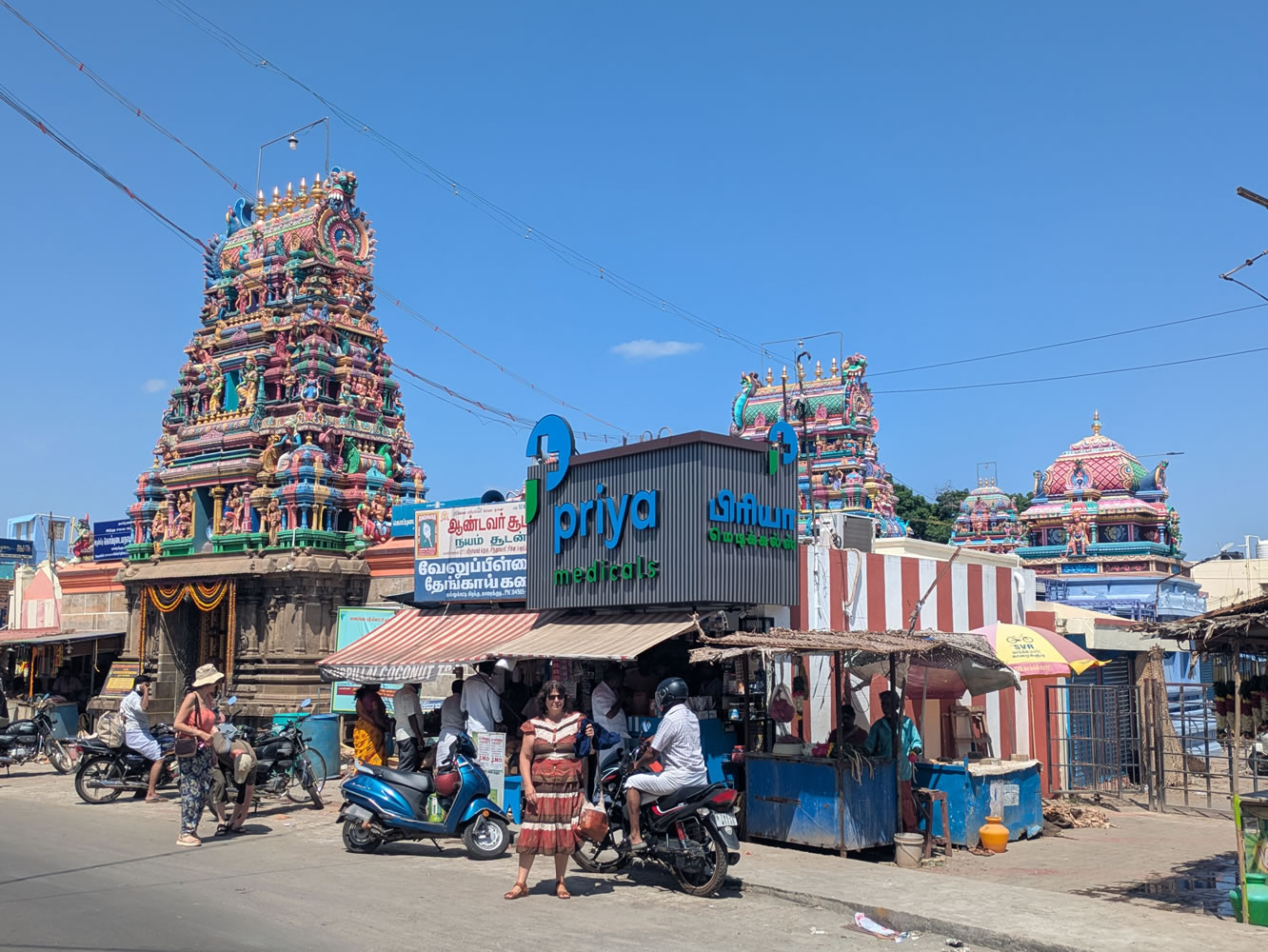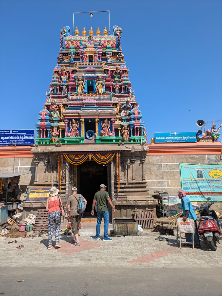 Après-midi tentative de visite d'un marché mais il n'avait lieu que le matin. Arrêt devant le temple Bharagathamba à Pudukkottai.