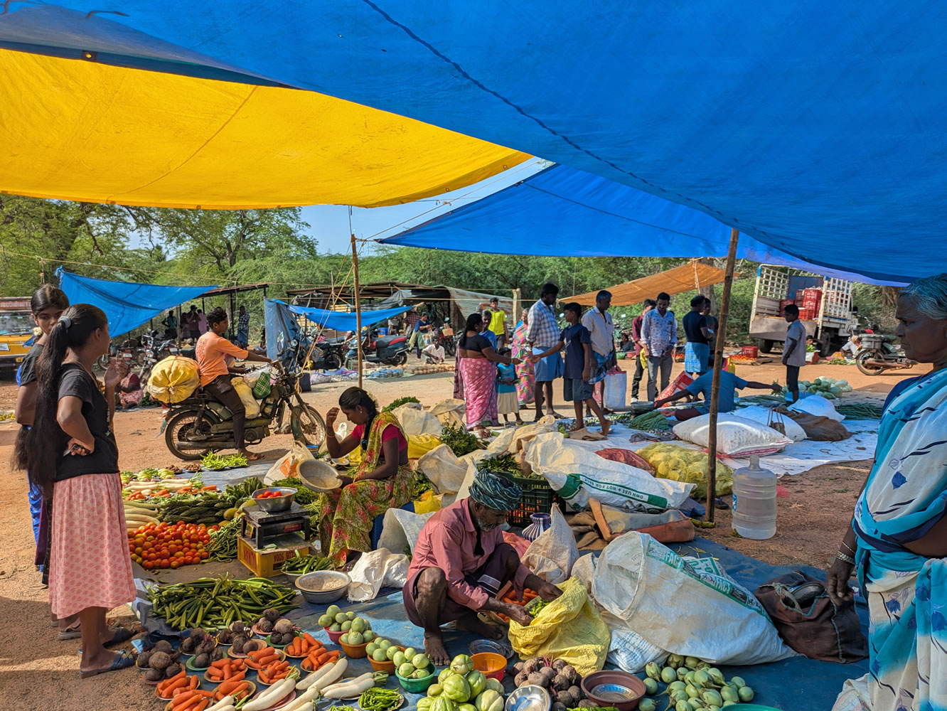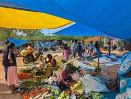 Départ tôt pour le marché très coloré aux différents fruits et légumes.