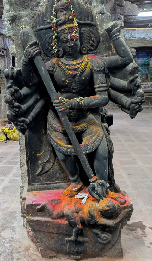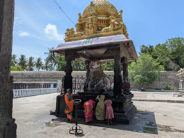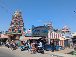 La ville abrite un vaste temple de Shiva, deux enceintes coiffées de 4 gopurams et un cinquième au-dessus du sanctuaire principal, où Shiva est représenté par un imposant linguam que l'on habille tous les jours. Sur la droite, un mandabha sobre, bel Anuman particulièrement vénéré sur l'un des piliers de gauche.