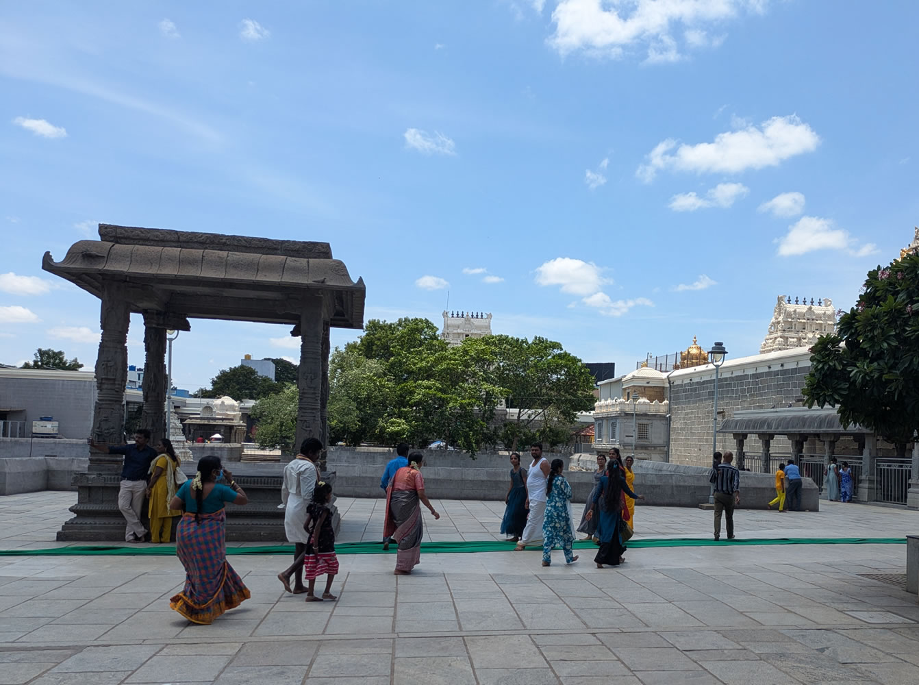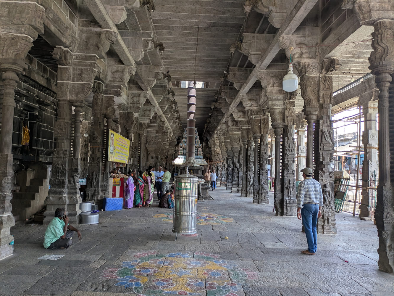 Sur le trajet, visite de Kanchipuram, ville sainte pour les hindous. Cette ancienne ville royale du VIè siècle était un lieu où l’on venait s’instruire. Elle comptait des milliers de temples autrefois, il n’en reste plus qu’une centaine de nos jours, dont 4 principaux : le Varadaraja, dédié à Vishnu, Ekambareswara, le plus mystérieux, Kamakshi Amman, dédié à un avatar de l’épouse de Shiva et Kailashnatha, le plus vieux.