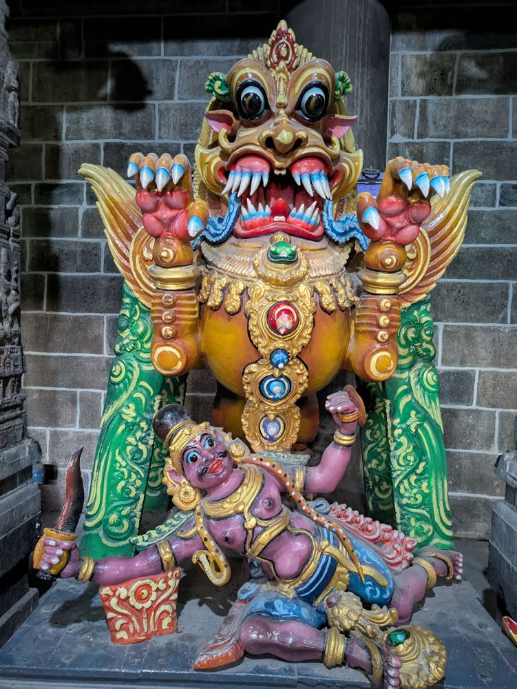 Découverte de la ville et de ses temples. Les 18 temples de la ville de Kumbakonam témoignent de l’importance artistique et spirituelle de la cité au Moyen-âge. Dans le temple de Nageshwara, fondé au IXe siècle, Shiva est représenté en « Dieu-serpent »