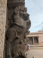 Visite du Temple Rama, sculptures de type Nayak, avec une fresque du Ramayana dans la première enceinte.