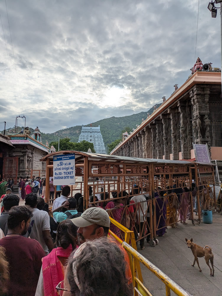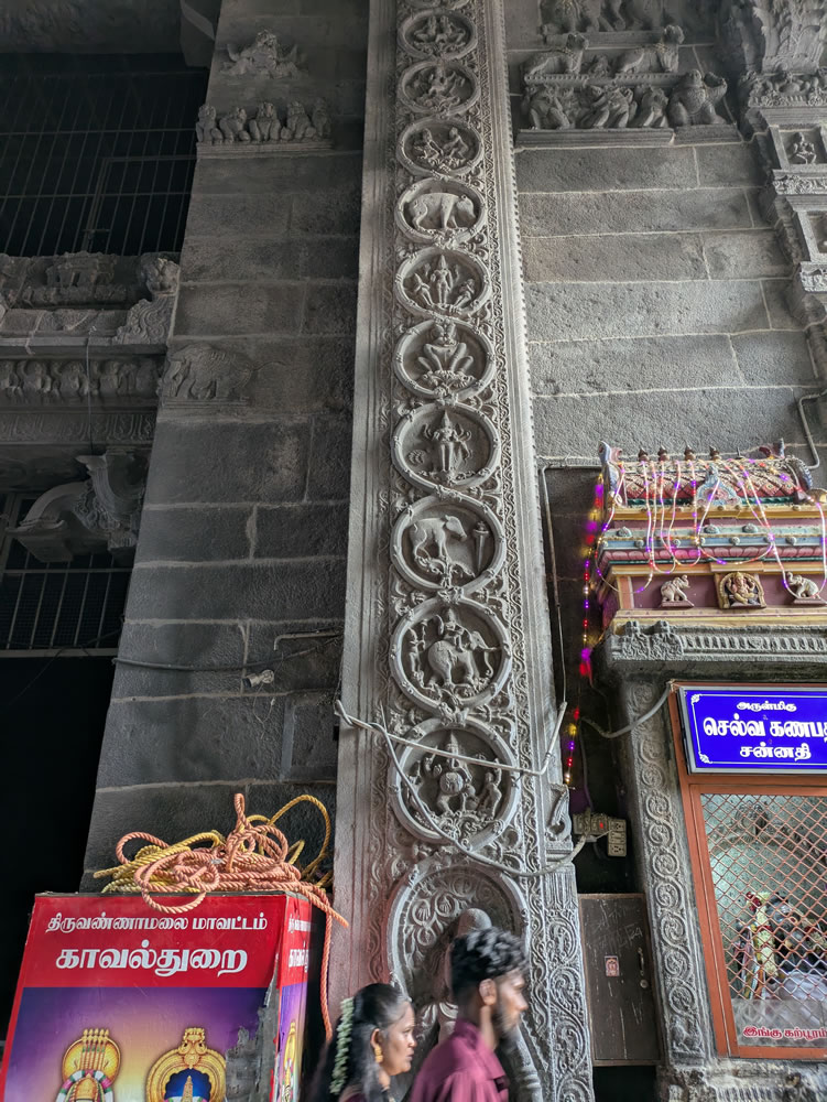 Visite du temple d’Arunachaleshwar-Annamalaiyar, dont les entrées sont au pied des gigantesques gopuras que l’on voit de loin ! Les parois des murs intérieurs sont couvertes de sculptures de danseurs, de nains et d’animaux. Il n’y a pas moins de 5 enceintes à franchir pour accéder au sanctuaire qui abrite le lingam de Shiva. Une montagne sacrée domine la ville. Cet ancien volcan est considéré comme la demeure de Shiva par les hindous.