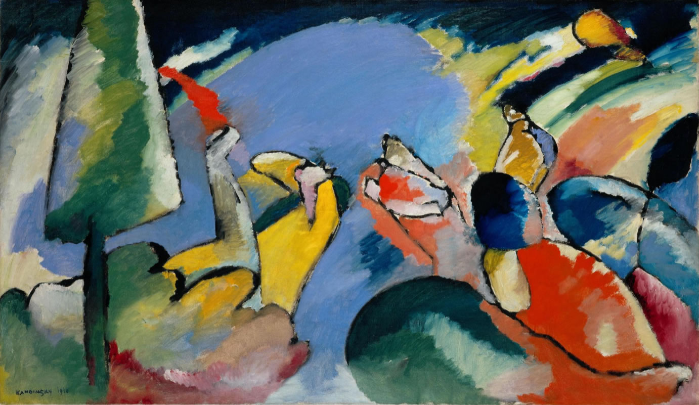 Improvisation 14 s'inscrit parmi une série de 35 toiles éponymes que Kandinsky réalise de 1909 à 1914, et qui formalise le basculement de sa peinture vers l'abstraction. L'agencement des formes colorées, cernées de noir, prime désormais sur la représentation objective d'un motif : deux chevaliers s'affrontant sur fond de paysage en t'occurrence. Et par le choix même d'un terme musical pour qualifier cette peinture nouvelle, le peintre redouble son admiration pour un art qu'il juge supérieur par son langage immatériel et abstrait, à même de provoquer les "vibrations de l'âme".