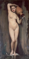 La Baigneuse voit le jour au moment où Fernand Léger se réconcilie avec le sujet dans le tableau. Il fait alors ses rencontrer personnages et objets dans ses œuvres. Une baigneuse, motif fréquent dans la peinture classique, et un tronc d’arbre se partagent l’espace de manière égale. Fernand Léger évoque, dans La Baigneuse, le mouvement du bras du nu d'Ingres dans La source. Ici, le corps déstructuré répond aux formes humanisées d’un tronc d'arbre. Une draperie bleue les sépare et se fond avec la chevelure féminine qui évoque les remous d'une cascade.