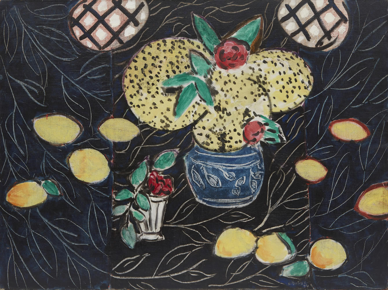Nature morte aux mimosas sur fond noir