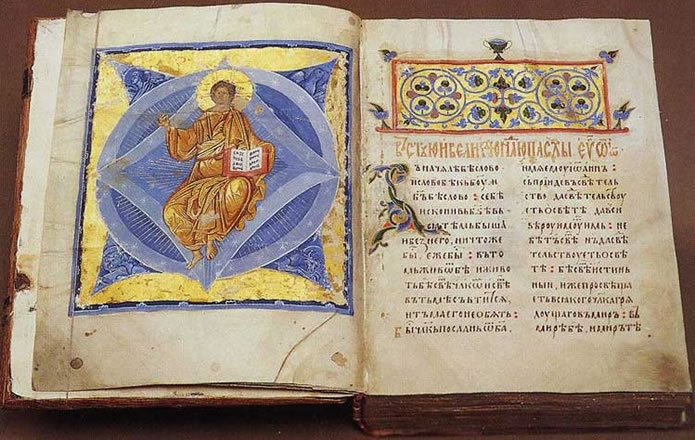 L'un des chefs-d'œuvre de l'art du livre, l'Évangile d'Andronikov, dont le style calligraphique sur un parchemin léger et finest caractéristique de la deuxième décennie du XVe siècle. Les informations selon lesquelles l'Évangile provient du monastère Andronikov de Moscou est attesté par un document du XIXe siècle. Très probablement, la création du code est associée à l'achèvement au cours de la deuxième décennie du XVe siècle de la construction de la cathédrale où le manuscrit devaitêtre l'évangile de l'autel. On sait que les moines du monastère d'Andronikov comprenaient les peintres d'icônes Andrei Roublev et Daniil Cherny qui peignaient la cathédrale Spassky. La seule miniature de cet évangile, frappante par son pouvoir d'impact émotionnel, laisse penser à la participation possible à sa création d'un des plus proches adeptes de ces maîtres. L'image du jeune Christ dans une robe dorée au centre de la «gloire» octogonale bleu ciel - symbole de la vie éternelle et de la résurrection - correspond exactement au sens le plus profond du début de l'Évangile de Jean sur la page suivante, lue à Pâques: «Au commencement fut la Parole ...».
