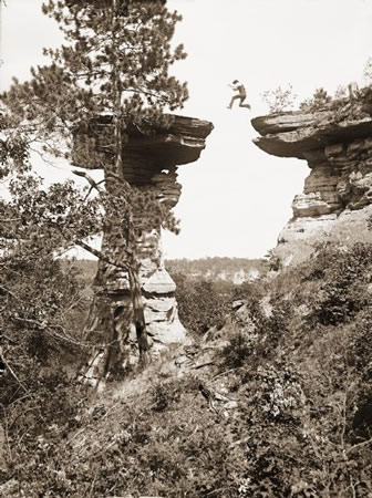 Ashley Bennett, fils du photographe H.H. Bennett, est photographié en plein vol alors qu'il saute vers le Stand Rock. La photographie a servi de preuve que la technologie d'obturation avancée de Bennett fonctionnait.
