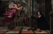 L'annonciation commence lorsque l'ange Gabriel vient voir la Vierge Marie et lui annonce qu'elle aura un enfant qui sera le fils de Dieu. La Vierge demande à l'Ange comment cela sera possible puisqu'elle n'a jamais connu d'homme. Il lui dit alors "... car Rien n'est impossible à Dieu qui est tout Verbe. La vertu du Très Haut te couvrira de son ombre..." La Vierge lui répond : "Ecce ancilla domini, fiat mihi secundum verbum tuum" ("Je suis la servante du Seigneur, qu'il me soit fait selon son verbe" Saint Luc l. 38) et, dans l'instant même, dès lors qu'elle accepte, l'Incarnation est faite.