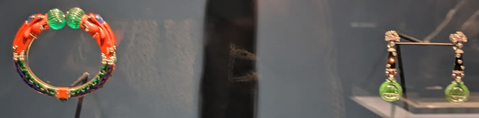 Les quelque 150 bijoux et accessoires présentés par le joaillier Cartier à l’Exposition internationale de 1925 sont l’aboutissement de recherches formelles entamées vingt ans auparavant. Pionnière, la maison explore très tôt de nouvelles esthétiques : dès 1904, les formes s’épurent, alors qu’apparaissent les premiers bijoux exclusivement géométriques. L’arrivée de Charles Jacqueau, qui rejoint le studio de dessinateurs en 1909 et collabore étroitement avec Louis Cartier, marque un tournant par l’introduction d’accords de couleurs audacieux, influencés par l’Orient. L’Inde inspire une nouvelle combinaison de pierres gravées multicolores, exposée pour la première fois en 1925, plus tard connue sous le nom de Tutti Frutti.