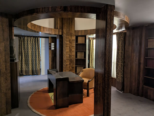 Pierre Chareau imagine un bureau-bibliothèque pour l'appartement privé d'une Ambassade française, le pavillon de la SAD. Cet ensemble résume à lui seul les grandes caractéristiques des créations de Chareau : mobilité, multifonction des espaces, et reprend dans la conception de son plafond le concept de l'éventail cher au créateur permettant d'augmenter l'éclairage naturel du bureau selon l'ouverture des vantaux sur un plafond lumineux. Il est complété du bureau MB 212, aux lignes géométriques, pourvu de divers rangements qui s'escamotent.