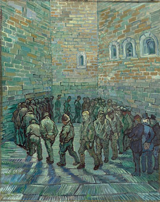 Niveau 1- Salle 9 : Le prisonnier, Vincent Van Gogh. Durant des mois, Vincent Van Gogh s'efforce de fuir l'asile psychiatrique de Saint-Rémy-de-Provence où il avait été volontairement interné au mois de mai 1889. Il ne parviendra à le quitter qu'en mai 1890 pour trouver refuge auprès du Dr. Gachet, à Auvers-sur-Oise. Il y trouvera la mort deux mois plus tard, le 29 juillet 1890, à l'âge de trente-sept ans. C'est durant ces longs mois d'attente à Saint-Rémy que Van Gogh peint La ronde des prisonniers (1890) tirée du dessin de Gustave Doré, Newgate. La Cour d'exercice (1872), qui montre une file de prisonniers dans la cour de la tristement célèbre prison londonienne.