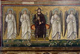 La conquête de Ravenne par les Byzantins, en 540, vit le début d'une restauration de l'orthodoxie catholique, au cours de laquelle les édifices précédemment liés aux Goths et à l'arianisme furent fermés ou reconvertis. Sur le bandeau continu situé au-dessus des arcs de la nef présente, sur toute sa longueur, un immense cycle de mosaïques. L'évêque Agnellus ordonna l'effacement des portraits, représentant probablement le roi et sa cour des deux vues du port de Classe et du Palatium de Théodoric.