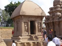 Les trois autres temples n'ont pas connu une pareille postérité, si ce n'est, justement, sous la forme des édicules ornant les superstructures : le ratha de Bhima adopte un plan oblong ouvert sur quatre côtés avec un péristyle entourant une cella allongée, dont le dégagement n'a pas été terminé, et une toiture en carène; le ratha de Draupadi a la forme d'une hutte villageoise, avec un toit à quatre pans imitant les toits de chaume; enfin, le ratha de Nakula et Sahadeva, décentré par rapport aux quatre autres, a un plan en abside.
