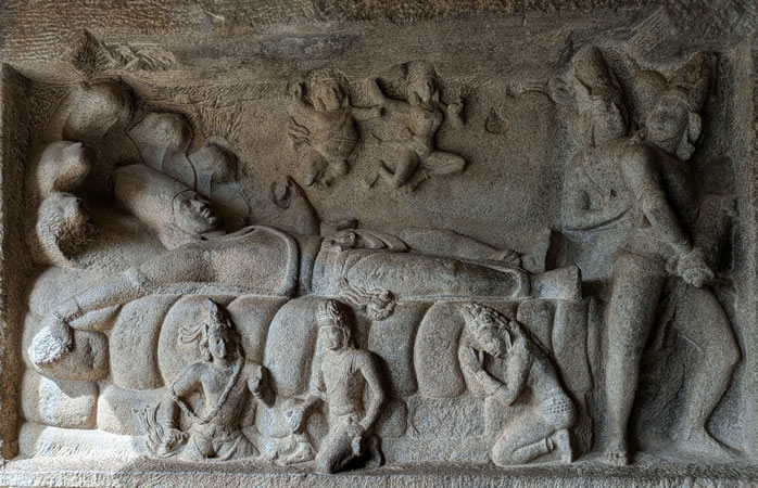 Le Mahishasuramardhini Mandapa date de la fin du VIIe siècle, sous la dynastie Pallava. Ce temple rupestre est situé sur une colline, près d'un phare, parmi d'autres grottes de Mamallapuram. Il présente de nombreux éléments architecturaux remarquables.