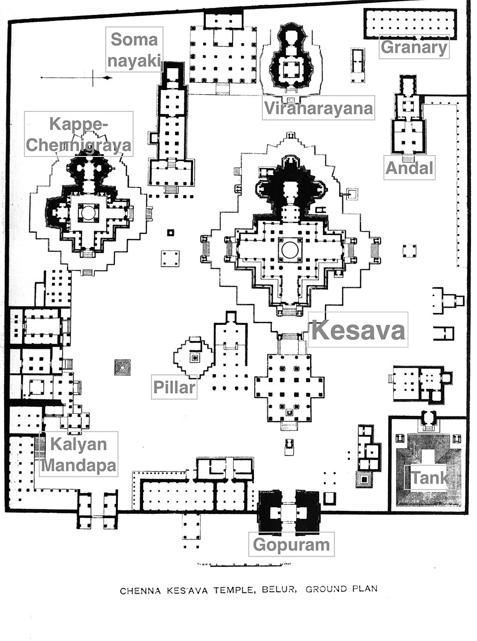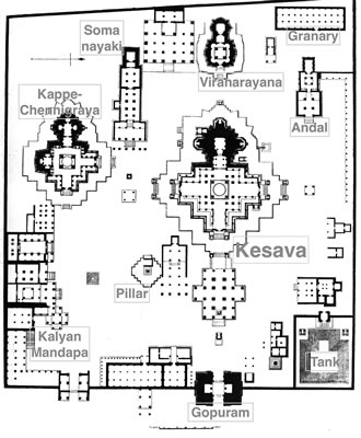 Le temple Chennakeshava, également appelé temple Kesava, est le temple principal. Il se trouve au centre du complexe, orienté à l'est, face au gopuram. Avec les ajouts ultérieurs, il mesure 54,3 x 47,6 mètres. Le temple repose sur une large terrasse (jagati) d'environ 90 cm de haut. Il est dédié à Vishnu sous la forme de Kesava.