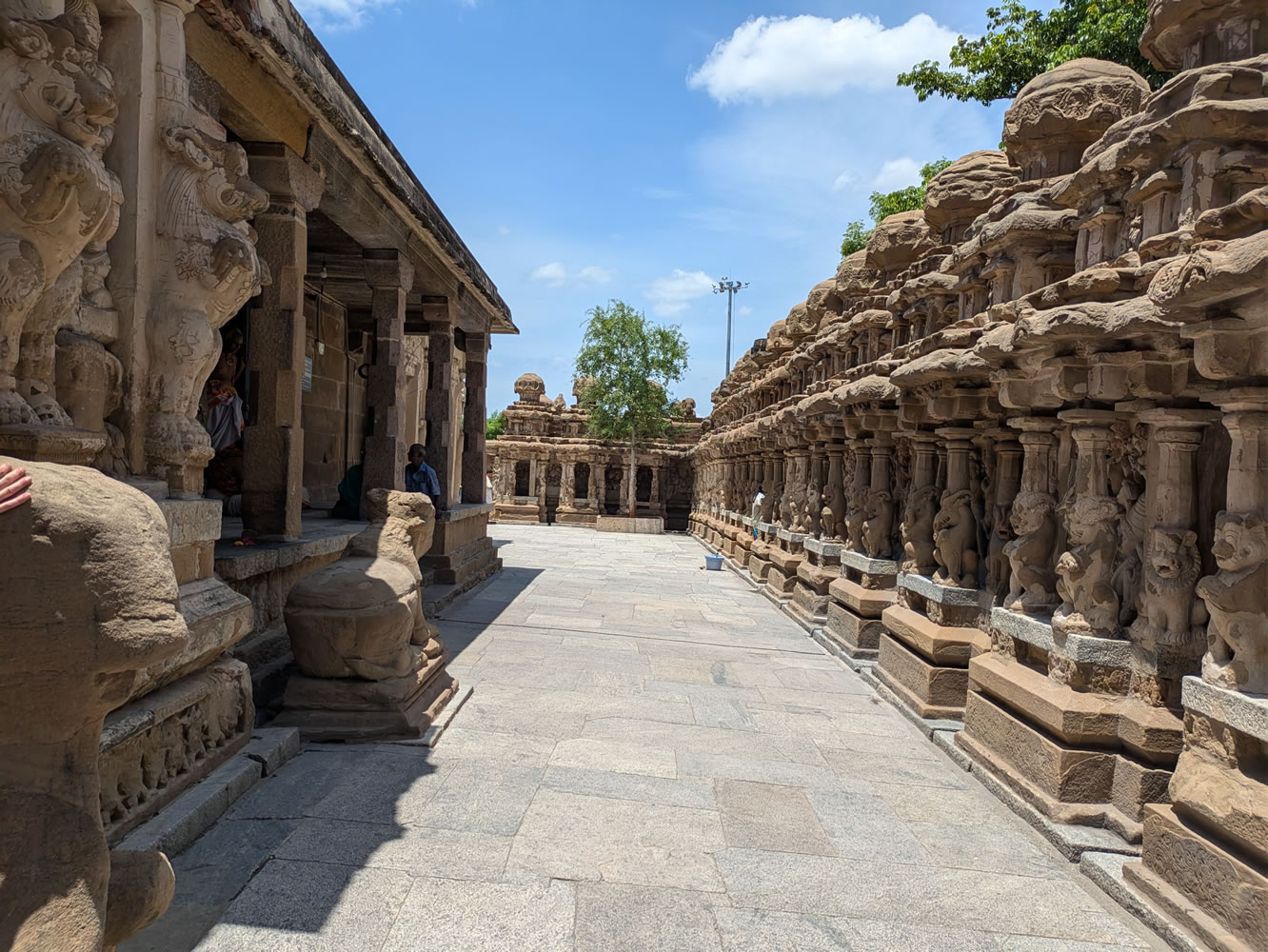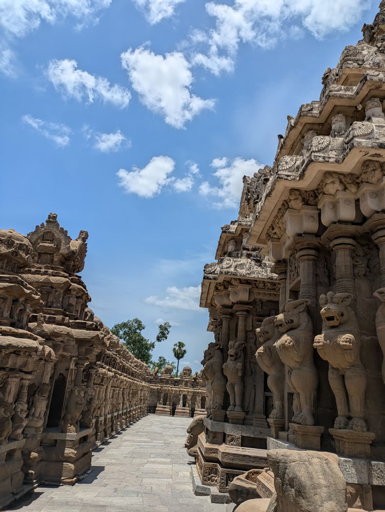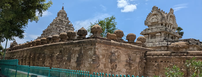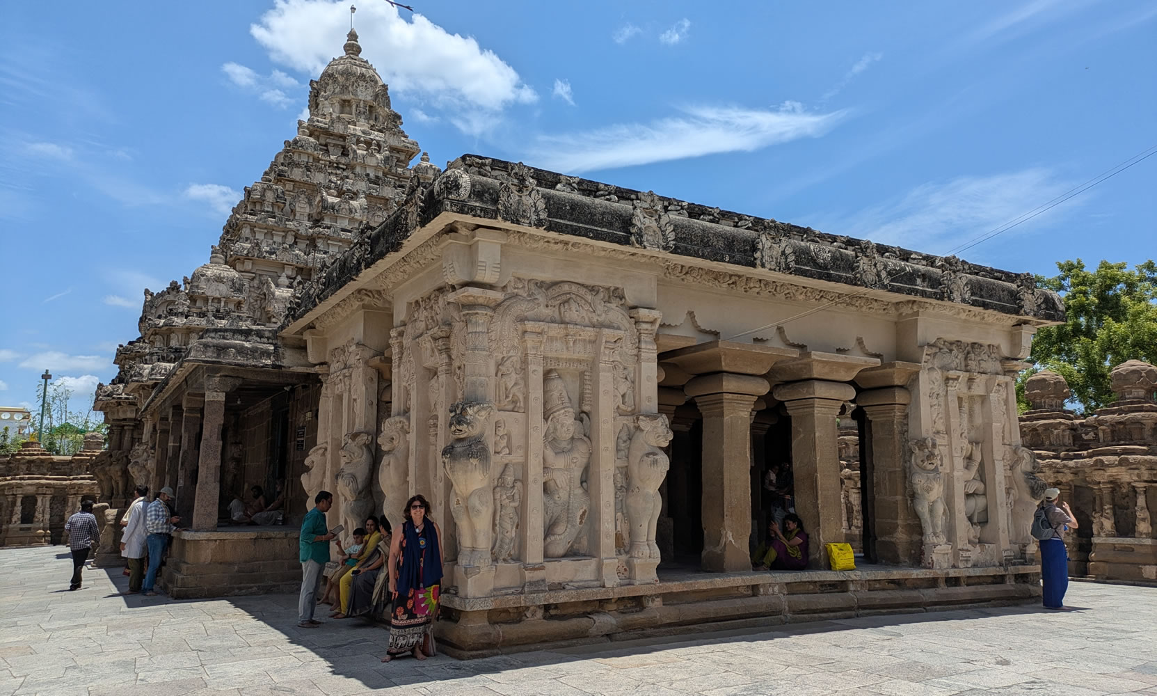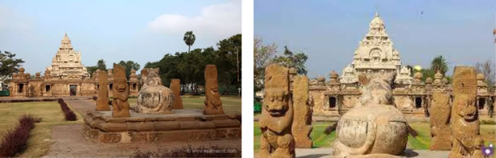 Kangapatakai, l'épouse de Rajasimha, est également créditée de la construction de ce temple. La contribution la plus remarquable de Rajasimha à l'architecture Pallava réside dans le remplacement de la pierre par la brique et le bois dans les temples. Le temple de Kailasanatha est remarquable pour son riche ensemble d'art hindou finement sculpté, de la tradition tamoule de la fin du VIIe et du début du VIIIe siècle (avec de nombreux éléments agencés de manière complexe).
