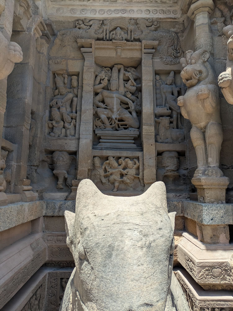 Le Nandi Mandapa se trouve à environ 100 mètres du temple, de l'autre côté des vastes pelouses. Il est de taille moyenne et fait face au sanctuaire.