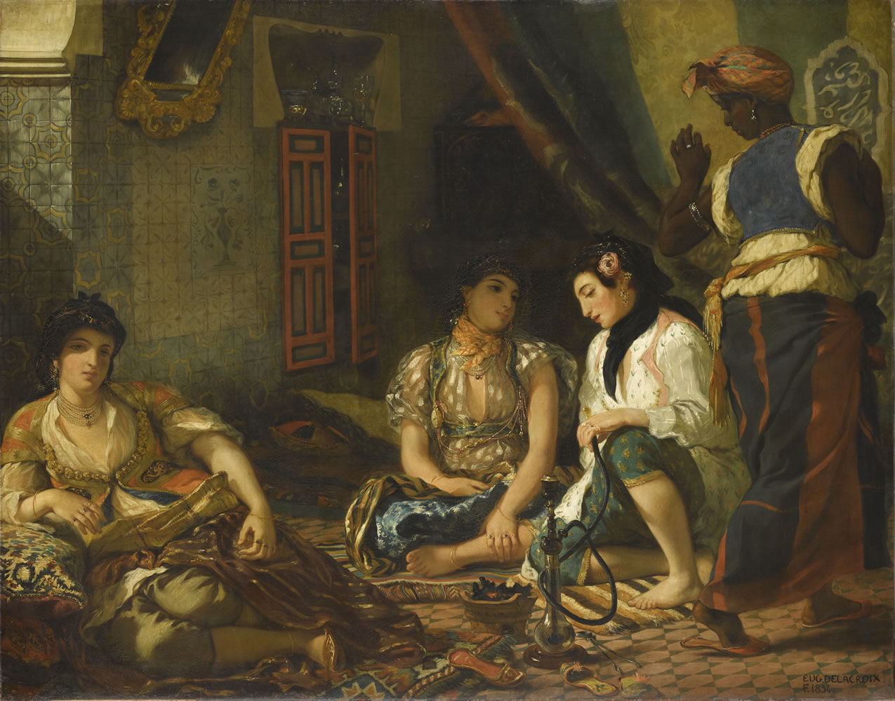 Peint par l'artiste au retour de son voyage en Afrique du Nord, le tableau a été acquis par l'État dès sa création en 1834. Après avoir été présenté au musée des artistes vivants (palais du Luxembourg), il est entré au musée du Louvre en 1874. Sa couche picturale est restée en bon état, sans usure et avec très peu de retouches. Mais son appréciation visuelle s’était dégradée depuis plusieurs décennies, en raison des nombreuses couches de vernis oxydés qui le recouvraient. Cet écran épais provoquait un jaunissement, un assombrissement et un aplanissement optique de la composition : les blancs, pourtant très variés, étaient ramenés à la même teinte ocre, l’opacité des vernis réduisait l’illusion de profondeur de l’espace, tandis qu’on distinguait avec peine les objets évoqués à l’arrière-plan (le meuble d’encoignure, les tissus roulés en boule, les variations du carrelage mural). L'aspect de certaines gerçures de matière a été atténué. Un nouveau vernis naturel a achevé de rendre la saturation et le contraste des couleurs.