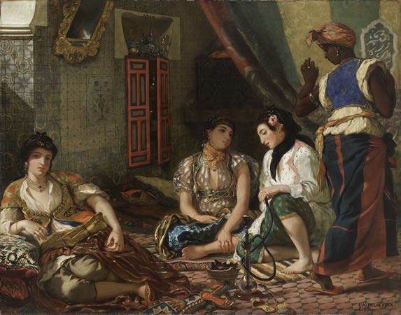 La virtuosité coloriste a fait des Femmes d’Alger un modèle pour la génération des peintres impressionnistes et néo-impressionnistes. Fantin-Latour l’a copié, Renoir l’a imité. Paul Signac l’a érigé en leçonPaul Signac a érigé ce tableau en leçon "d’application de la méthode scientifique" du contraste simultané des couleurs. Pour lui "Dans les Femmes d’Alger, le peintre ne veut exprimer aucune passion, mais simplement la vie paisible et contemplative dans un intérieur somptueux : il n’y aura donc pas de dominante, pas de couleur clef. Toutes les teintes chaudes et gaies s’équilibreront avec leurs complémentaires froides et tendres en une symphonie décorative, d’où se dégage à merveille l’impression d’un harem calme et délicieux » (D’Eugène Delacroix au néo-impressionnisme, Paris, 1911)."