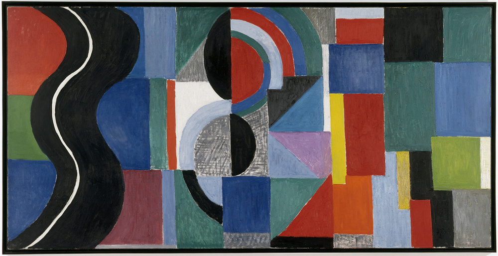 Ce grand tableau est une synthèse du travail de Sonia Delaunay. Il se décompose en trois parties animées de motifs très différents qui renvoient à des œuvres antérieures. Les couleurs, posées en aplat ou au contraire en touches visibles, unifient l'ensemble. Leurs contrastes produisent un rythme qui rappelle à l'artiste les syncopes du jazz. La bande noire ondulante, à gauche, vaut au tableau son surnom de Serpent noir.