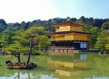 Désireux d'instaurer une marque forte de pouvoir dans la capitale impériale, le shôgun Yoshimitsu Ashikaga (1358-1408) fait construire le pavillon d'or en 1397, qui était à l'origine une villa privée. À la mort du shôgun Yoshimitsu, son fils Yoshimochi transforme l'endroit en temple Zen pour l'école Rinzai et le nomme "Rokuon-ji". Le sobriquet "Kinkaku-ji", le pavillon d'or, ne lui échoira que plus tard dans l'histoire.