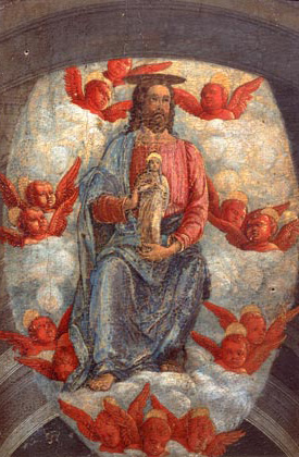 Ce petit tableau devait probablement surmonter celui de La mort de la vierge et faire face à La circoncision.